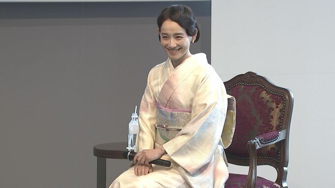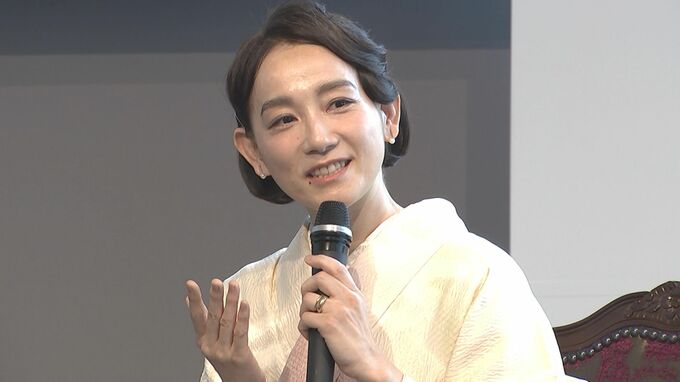 篠原さんは、白を基調とした艶やかな着物と、雲柄の帯を身に着けて登場しました。 “私は生活の中に、積極的に香りを取り入れておりまして。香りは、感情を導いてくれるものだと思っています。例えば、皆さんに元気を届けたいステージの時は、柑橘系・フレッシュな香りをまとう。”