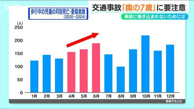 さらに、歩行中に交通事故に遭った児童の死亡・重傷者数は、新学期の始まる4~6月にかけて増加する傾向にもなっているそうです。