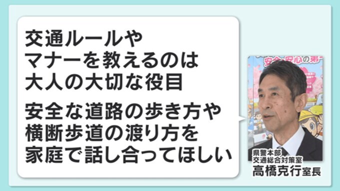 新潟県警の高橋室長は、「交通ルールやマナーを教えるのは大人の大切な役目。安全な道路の歩き方や横断歩道の渡り方を、家庭で話し合ってほしい」とも話していました。