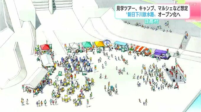 民間の事業者が日高村に申請すると通水が行われていない時に見学ツアーやキャンプ場としての利用、マルシェの開催など、様々な活用が可能だといいます。