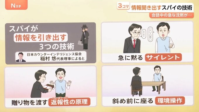 ではスパイが情報を引き出す3つの技術について、スパイに詳しい「日本カウンターインテリジェンス協会」の稲村悠代表理事に伺っています。皆さんも使えるかもしれません。