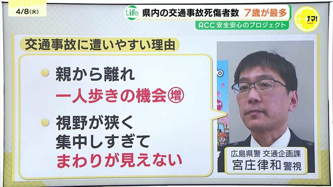 広島県警交通企画課の宮庄律和警視によりますと、小学生になりたての子どもたちが、交通事故に遭いやすい理由として以下の2点があげられるといいます。
