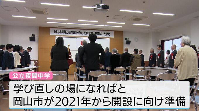 岡山県内初となる公立の夜間中学がきのう(8日)岡山市に開校し、一期生の入学式が行われました。