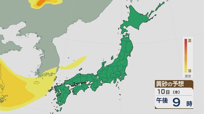 【黄砂情報】黄砂は11日(金)朝から日中で西日本に飛来の見込み 最新のシミュレーション 北陸放送 2025年4月9日(水) 12:25 国内 週の後半11日(金)ごろは、西日本を中心に黄砂が飛来しそうです。 9日(水)大陸で飛んでいる黄砂は、10日(木)には東シナ海に達する見込みです。