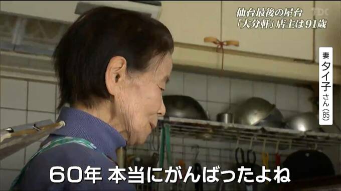 一緒に屋台を支えるのが妻のタイ子さん85歳です。