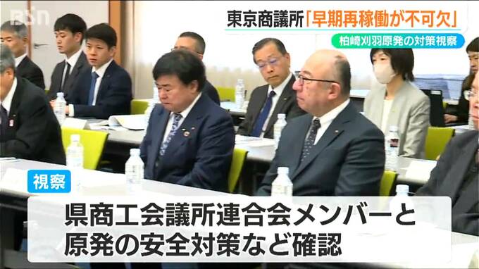 東京商工会議所の小林健 会頭らが9日、柏崎刈羽原発を視察。県商工会議所連合会のメンバーも同行し、原発の安全対策などを確認した上で一日も早い再稼働を求めました。