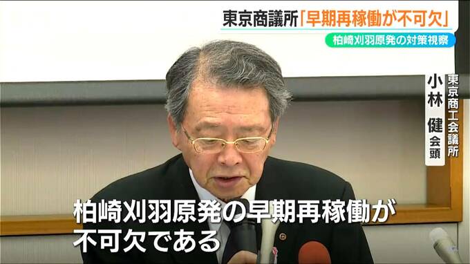 【東京商工会議所 小林健 会頭】「現在、首都圏のエネルギーは東京湾沿岸の火力発電所に依存している。首都直下地震等、万が一の事態に備えるためにも柏崎刈羽原発の早期再稼働が不可欠である」