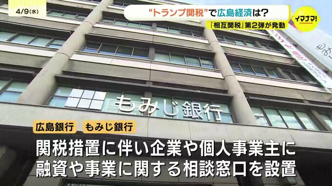 また、広島銀行やもみじ銀行などでは、今回の関税措置に伴い企業や個人事業主に対しての融資や事業に関する相談窓口を設置するとしています。