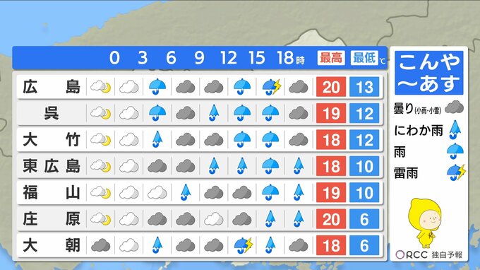 あす朝の冷え込みはきょうより緩むでしょう。最高気温は、20℃前後の所が多く、あすもこの時期らしい気温ですが、日差しが届かないので上着があった方が良いでしょう。