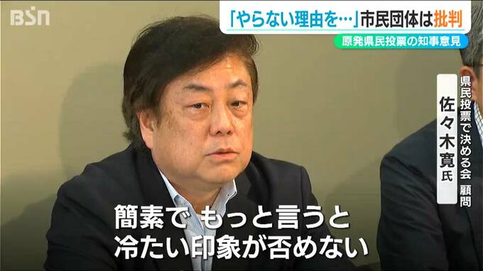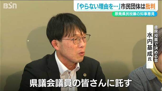 原発再稼働の是非を問う県民投票の実施に対し新潟県の花角英世知事が慎重な姿勢を示したのをうけ、県民投票の実現を目指す市民団体が9日に新潟県庁で会見を開き「やらない理由を探している」と知事の姿勢を批判しました。