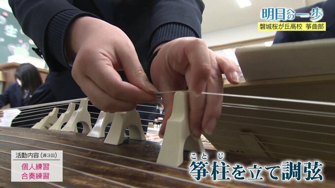 その始まりは箏柱(ことじ)を立て、調弦(ちょうげん)するところから。