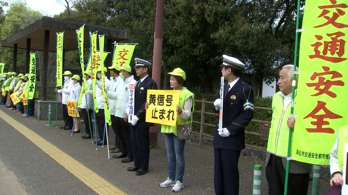 街頭キャンペーンは、県内の117か所で行われているものです。このうち高松市の栗林公園前では、朝の通勤時間帯に香川県警の岡本本部長ら約60人が出て、のぼりやプラカードを掲げて交通安全を呼びかけました。