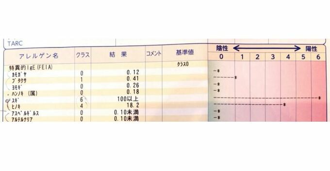 酒井さんは、「今までは病院からのお薬で抑えていましたが、今回一緒に舌下治療をしてみようということで血液検査しました」投稿。