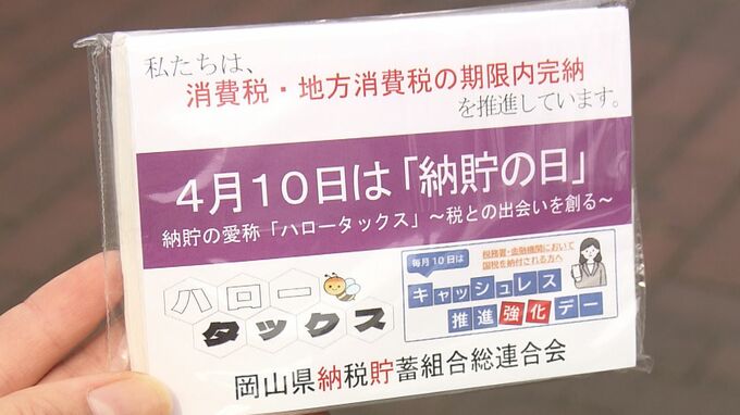 きょう(10日)は「納貯(のうちょ)の日」です。JR岡山駅前では、期限内の納税を呼びかける啓発活動が行われました。