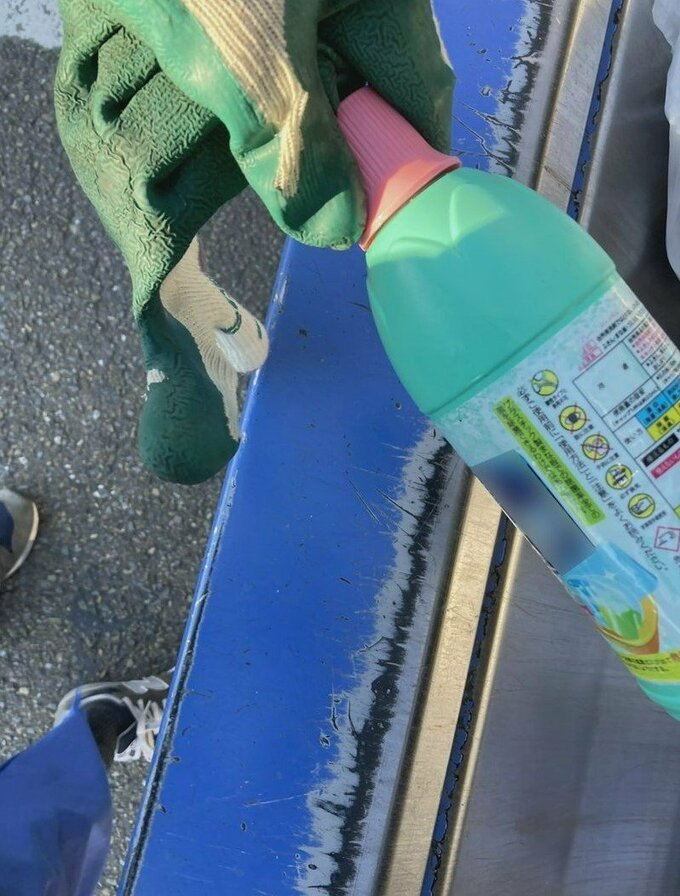 続けて、「回転板に挟まれると破裂して目に入ると危ない漂白剤、そして湿気取りの使用後の水はそのまま捨てないでください。」と写真を添えてコメントしました。