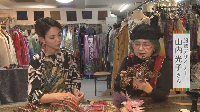 ▼服飾デザイナー 山内光子さん「昔はバレッタが流行だったけど、今はバレッタではなくて新しい素材の使い方が出てきていますね。その時代の産物、あるものでアレンジしていく。それが今、SDGsという一つの大きなテーマが世界的に出ていて。捨てるものをちょっと待てよという感じで、それをストップかけて、これを何にいかせばいいのかなっていう。私はそれとの挑戦なんですね」