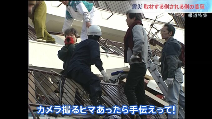 室内には閉じ込められた人がまだいた。救助する人々を、カメラでとらえていた羽根記者に強い言葉が。