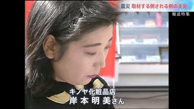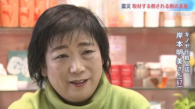 地震からまもなく、化粧品店を再建しようとしていた岸本明美さん。避難所でお客さんから「化粧品を何とかしてほしい」と声を掛けられ、店を再開させると決めた。