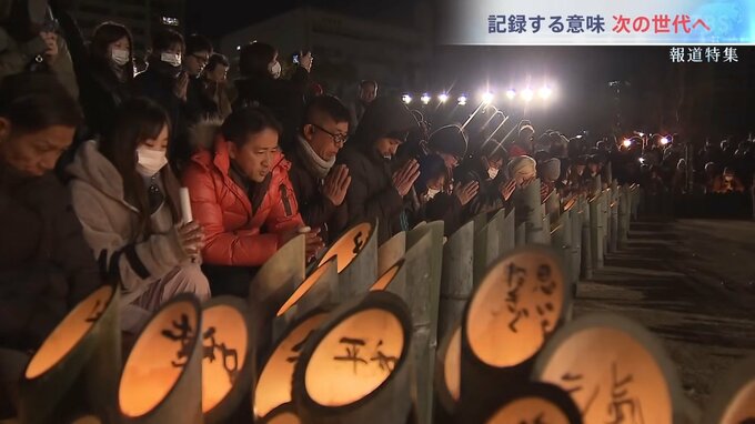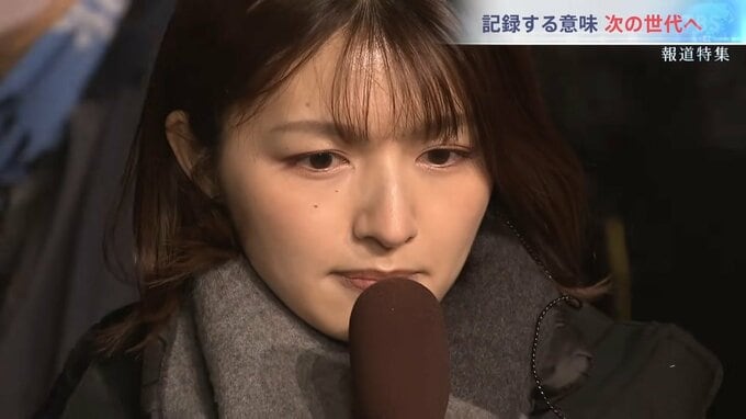 「会場では大勢の方が手を合わせています。私は今回、様々な人に話を聞きました。私が最も印象に残った言葉は、『被災者を悲しい人たちにしないでほしい』という言葉です。私たちはこの神戸で30年間暮らしてきて、今も前を向いて生き続けているんだと」
