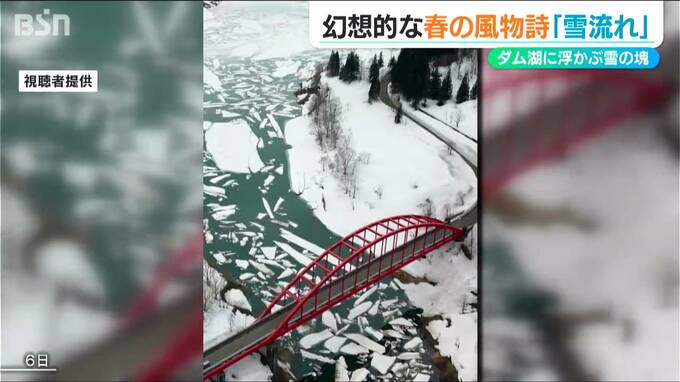 ダムの水量はこの週末にピークを迎える見込みで、『雪流れ』は20日ごろまで見ることができそうです。