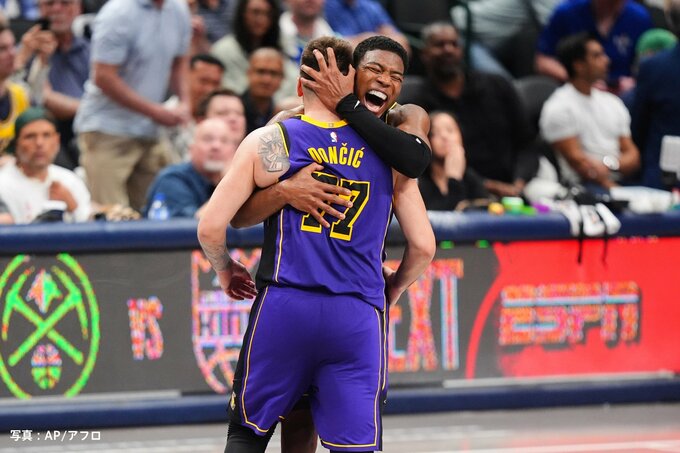この日は今季マーベリックスからレイカーズへトレード移籍してきたドンチッチが古巣を相手に大暴れ。3ポイントを10本中7本成功させるなど合計45得点、8リバウンド、6アシストを記録。レイカーズが112ー97でマーベリックスに勝利し、ウエスタン・カンファレンス6位以内が確定。3シーズン連続のプレーオフ進出を決めた。
