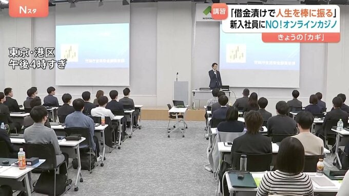 警視庁保安課 半田正浩 課長「借金漬けになって将来も人生も棒に振るということになります」オンラインカジノが社会問題となる中、警視庁はきょう、「西松建設」の新入社員に向けて講義し、「オンラインカジノは…