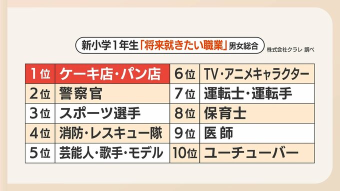 男の子と女の子を合わせたランキングで、18年連続で1位になっている職業があります。その夢とは一体何でしょうか?入学式が終わった直後の1年生に話しを聞きました。Qどうでしたか初めての小学校は? 「楽し…