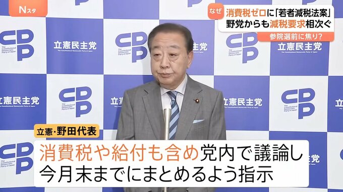 野田代表は参院選の公約を見据えて、消費税や給付も含め党内で議論を行い、今月末までにまとめるよう指示していて、11日から議論が始まります。