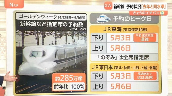 ゴールデンウィーク(4月25日~5月6日)の新幹線などの状況です。