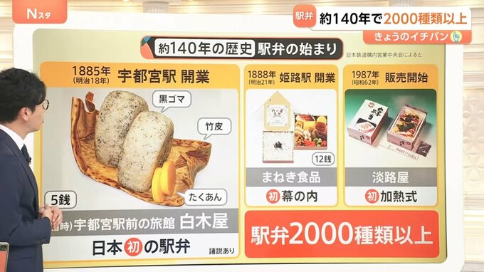 旅行の楽しみの一つに「駅弁」がありますよね。日本鉄道構内営業中央会によりますと、「駅弁」の始まりは1885年(明治18年)、宇都宮駅前にあった旅館「白木屋」が始めたということです。(諸説あり)