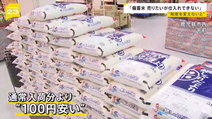 「備蓄米が並んでいます。通常入荷分より100円安いということです」