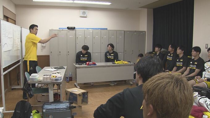琉球コラソンとのリーグ戦。黄色の大阪は東京オリンピックの日本代表、徳田廉之介など、4人のプロ選手を擁しますが多くは大卒ルーキーなど若手が中心。練習場所も日々変わる状況です。試合前、そんな選手たちに語ったのは…