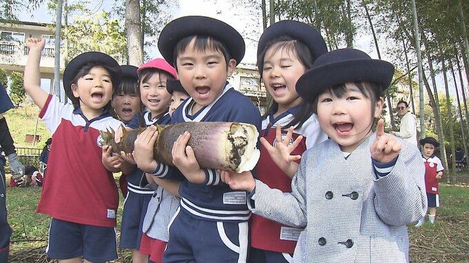 好天に恵まれた11日、大分市では園児が旬を迎えたタケノコの収穫を体験しました。のだ山幼稚園では子どもたちに食べ物への感謝の気持ちを持ってもらおうと、年間を通して農業に触れる活動に取り組んでいて、年長ク…