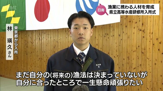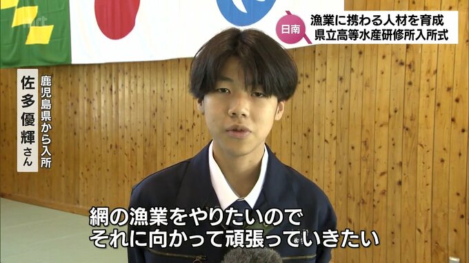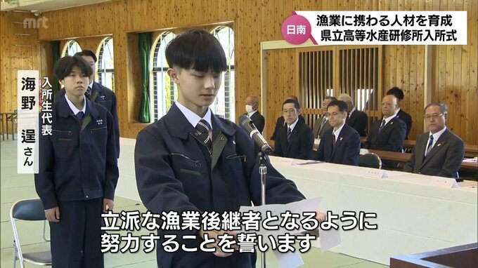 漁業に携わる人を育成する日南市の宮崎県立高等水産研修所で入所式がありました。