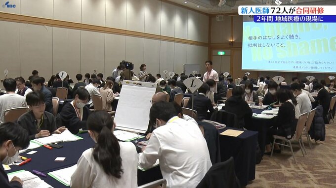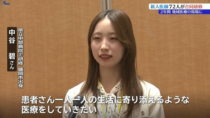 岩手県内にある病院で2年間の研修が始まった医師たちの合同研修会が盛岡市で開かれ、72人が医師としての心構えを学びました。
