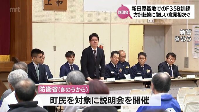 宮崎県新富町の航空自衛隊新田原基地に配備される予定の最新鋭ステルス戦闘機F35Bについて、防衛省が基地内で垂直着陸訓練を行うと方針転換した問題。10日、町民を対象にした説明会が始まり、参加者からは厳しい意…