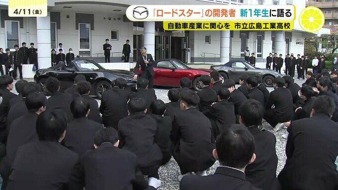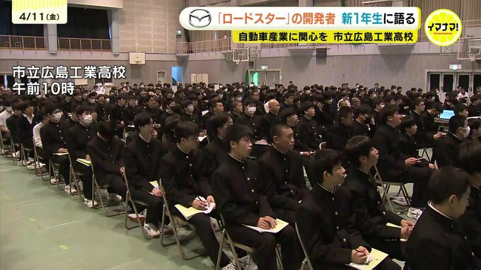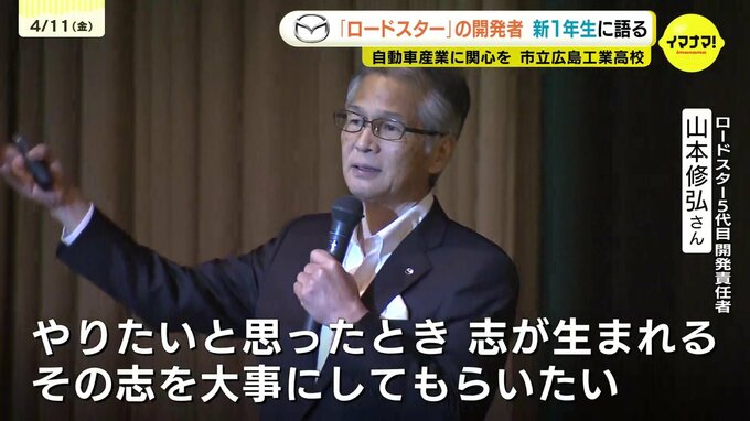講演したのは、「マツダロードスター」の5代目・開発責任者の山本修弘さんです。広島工業高校=市工の新1年生など生徒300人に講演しました。自らの車作りへの思いを語り目標を持つことの大切さを訴えました。