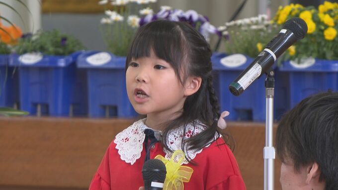 (新一年生代表・三原百茉莉さん)「私は国語のお勉強をすることが楽しみです。たくさんのお友達を作って遊びたいです」