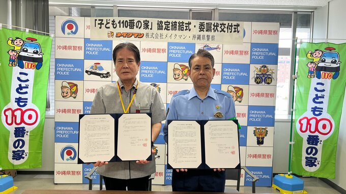 県警の垣花聡生活安全部長は「子の通学路における安全安心を確保する上で大変心強い。子どもを守る取り組みがさらに強化される。子ども110番の家として息の長い活動に取り組まれるようお願いします。」と話し、今後の同社の取り組みに期待を寄せた。