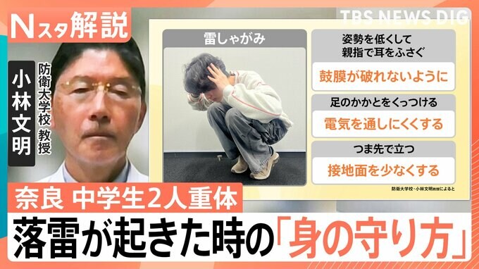 いつ落ちるか分からない雷。とっさの時の身の守り方とは?日比麻音子キャスター:10日の夕方、奈良市の学校でサッカー部員ら114人が練習中に落雷がありました。男子中学生2人が意識不明の重体となっています。過去1…