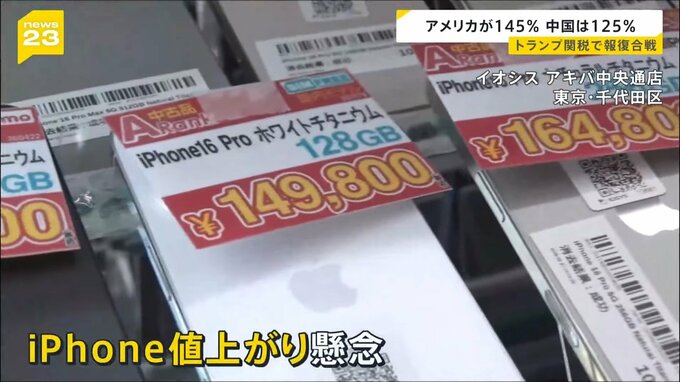 都内で、中古のスマートフォンを扱う店。アメリカ・アップル社のスマホ「iPhone」が今後、大幅に値上がりするのではないかと懸念されているのです。