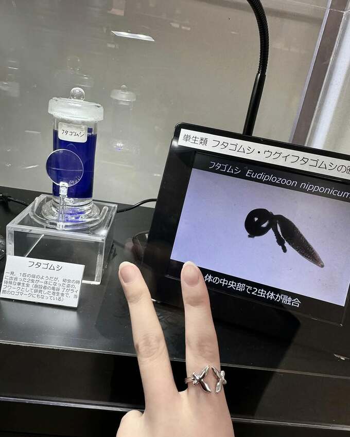 原さんが着用する「フタゴムシのオープンリング」は目黒寄生虫館の公式サイトで3300円(税込み)で紹介されています。
