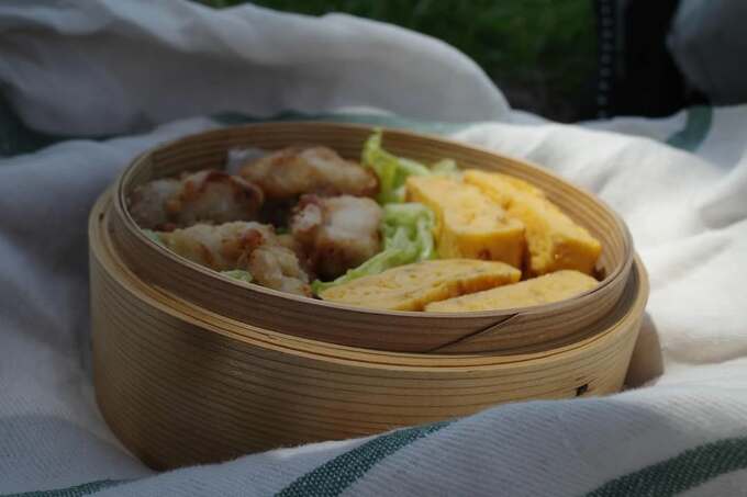 内山さんは「太陽の温かさも感じ、ティンクも気持ち良さそう。」と、愛犬を抱く写真も投稿。「簡単なものを詰めただけのお弁当」という中身はから揚げと卵焼きのようで、「外で食べるとまた美味しいですね。」と実感を込めて伝えています。