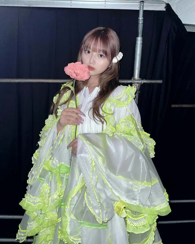 続けて「2ステージとも衣装が可愛すぎてずっとウキウキで楽しかったです」と綴ると、写真をアップ。