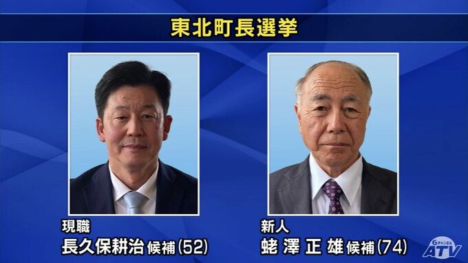 任期満了に伴う青森県東北町長選挙の投票が13日に行われています。 立候補したのは届け出順に現職で2期目を目指す長久保耕治さん52歳と、新人で前の町議会議員の蛯澤正雄さん74歳の2人です。投票は町内21か所の投…