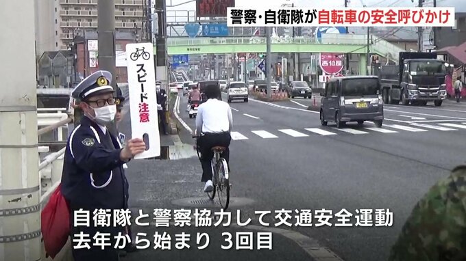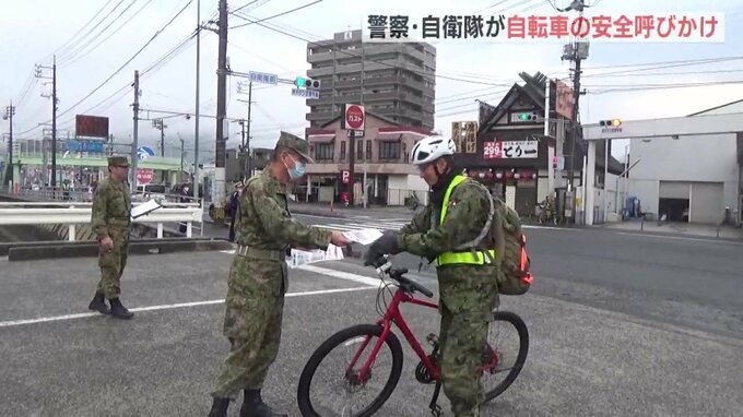 春の全国交通安全運動にあわせて、警察と自衛隊がタッグを組み、自転車の交通ルールを呼びかけました。