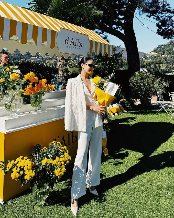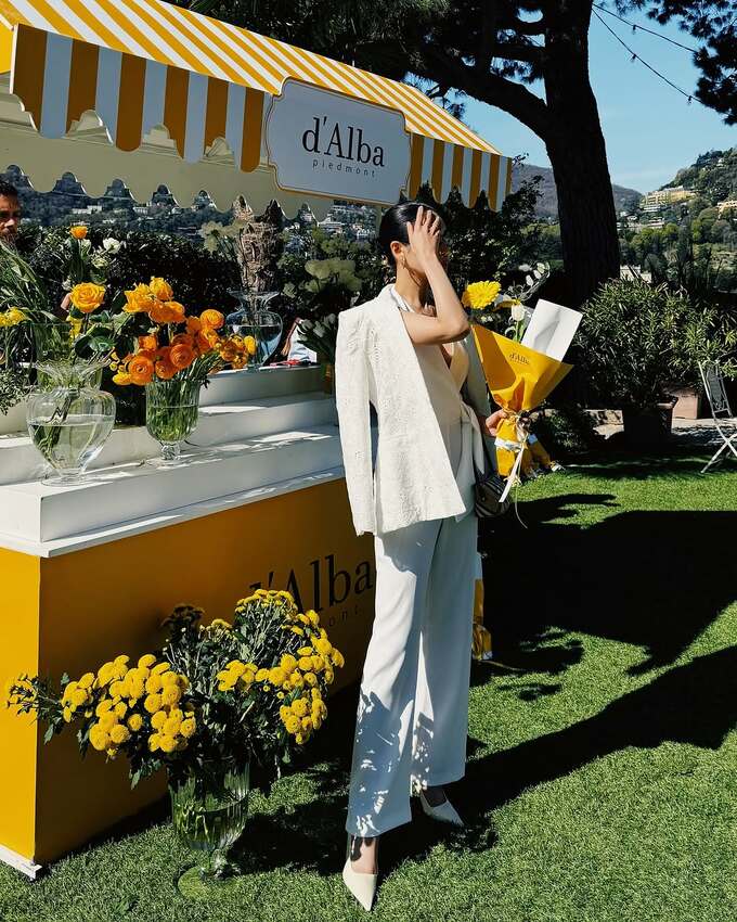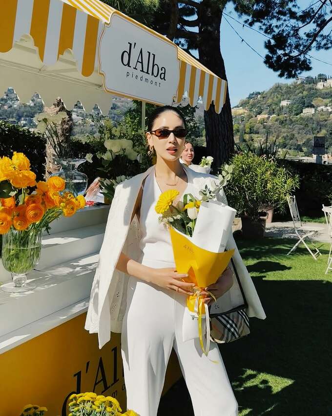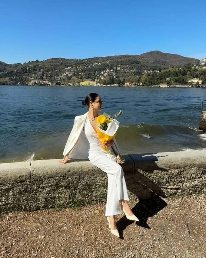 純白のエレガントなコーディネートが話題を呼んでいます。