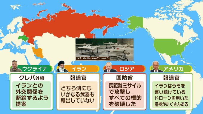 「クリミア半島、ヘルソン州にイラン人のドローンを使っている教官、その教官が売っている可能性もあるという報道もあります。おそらく国内に向けて売っているという情報も出てきました。となると作戦前にイラン人の教官をロシア国内に移動させて、クリミアにイラン人の教官が滞在しながらこの攻撃を行っている可能性があります。一方でイラン側はこれを否定しています」