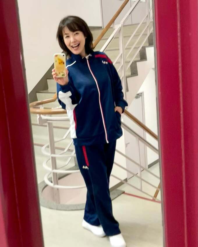 そして「さて、今日はレントゲン撮影のため、学校指定のジャージ。ジャージなんて、何十年ぶりだろう 一つ一つが新鮮な学校生活です」と、ジャージ姿の写真をアップしました。