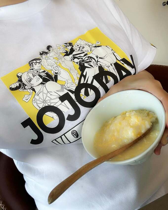 新井さんは「2年前は最強の女の子に変身していましたが 今日はお腹をこわしてお粥と#jojoday ☆笑」と書き出して、『ジョジョの奇妙な冒険』第6部「ストーンオーシャン」の主役、空条徐倫(くうじょう ジョリーン)に扮した自身の写真を投稿。